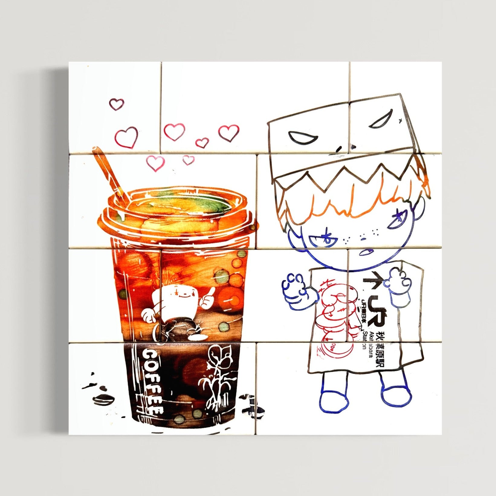 12x12 Multicolored hand dyed engraved tile on wood panel.