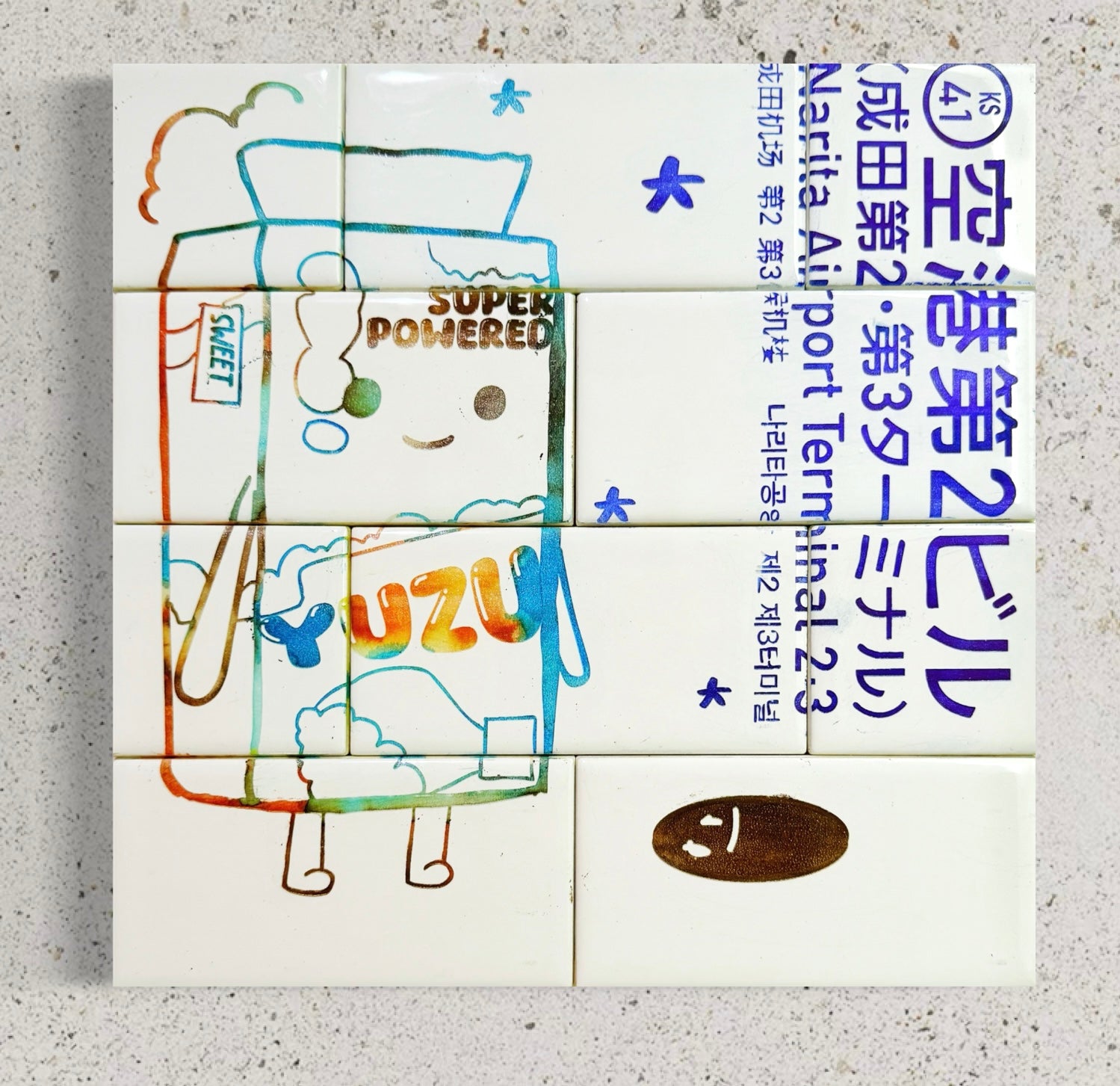 12x12 Multicolored hand dyed engraved tile on wood panel.