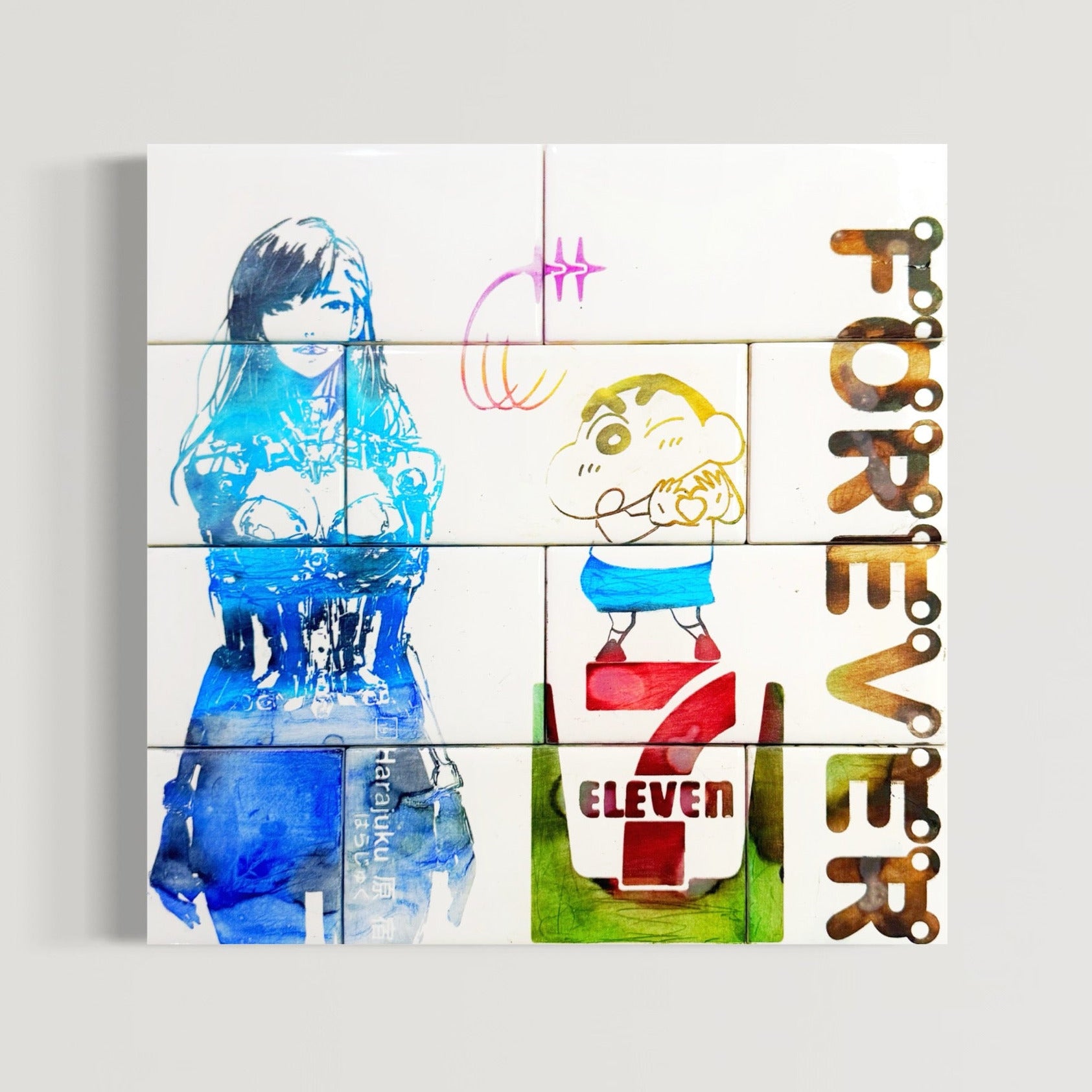 12x12 Multicolored hand dyed engraved tile on wood panel.