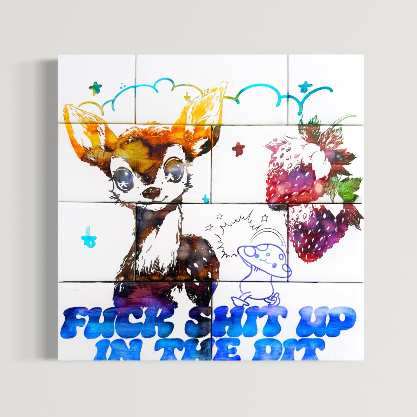 12x12 Multicolored hand dyed engraved tile on wood panel.