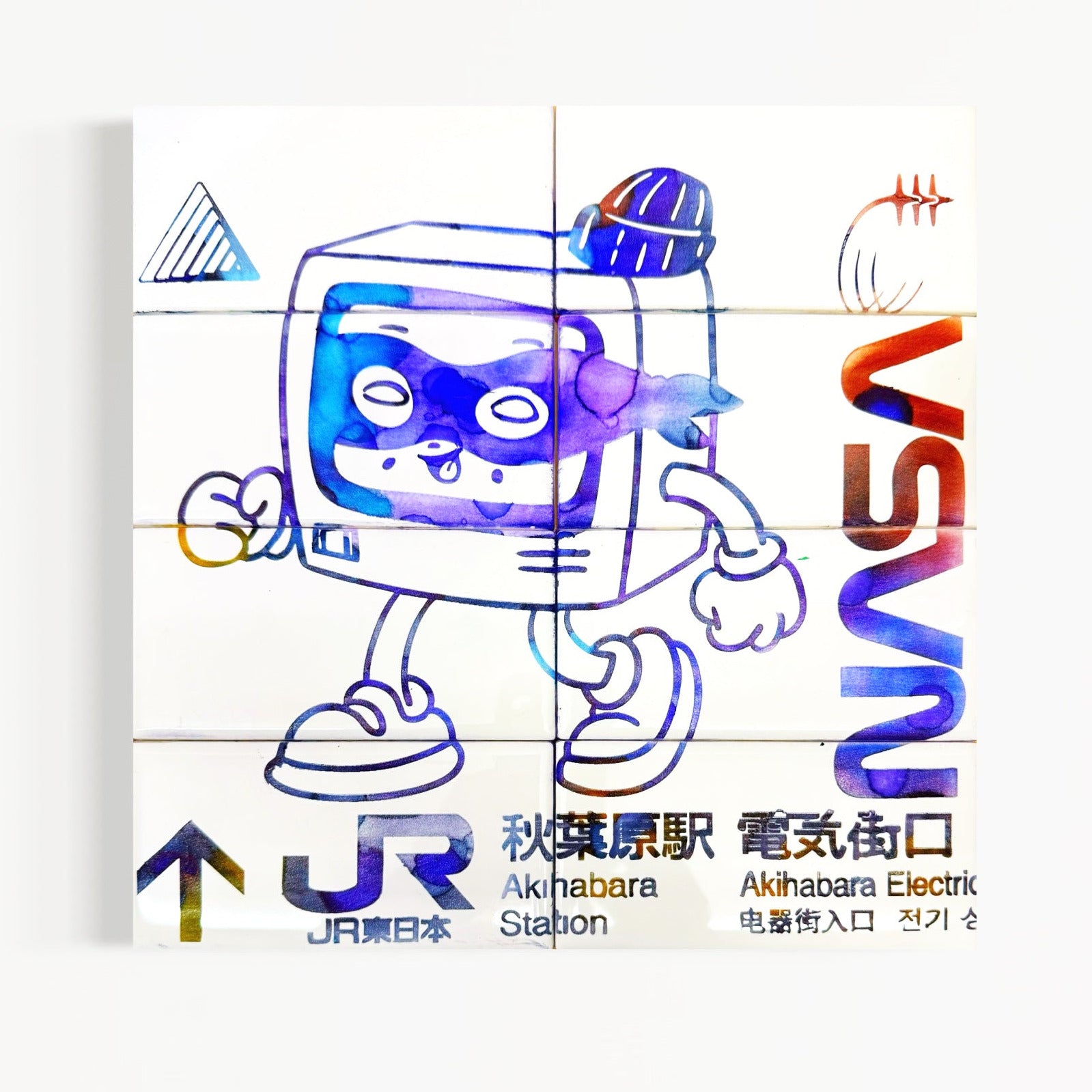 12x12 Multicolored hand dyed engraved tile on wood panel.